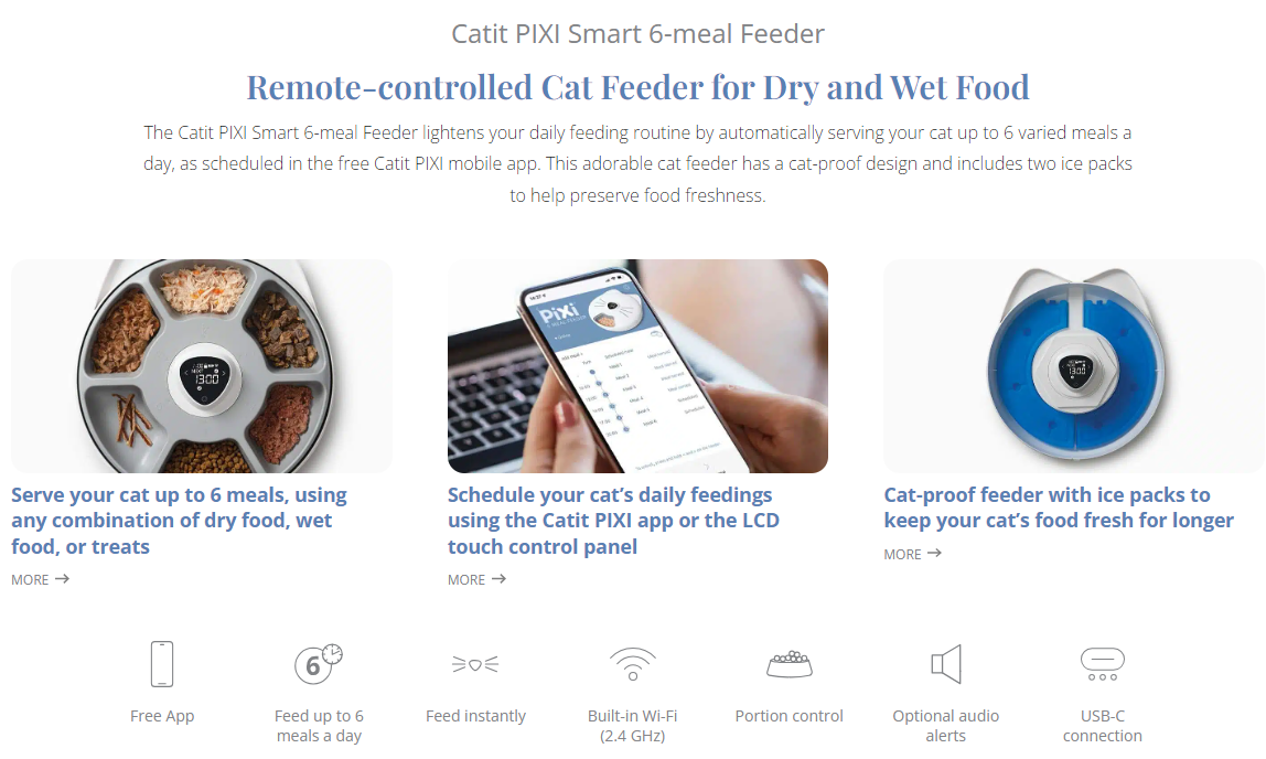 Feeding tray capacity: 6 x 5.7 fl oz (170ml)