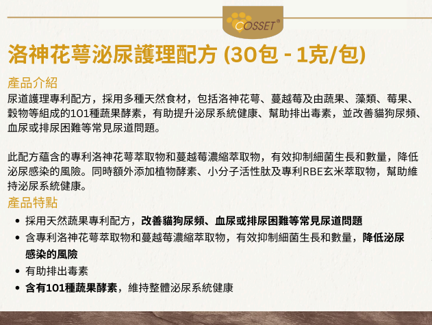 COSSET 101Enzyme Urinary Health Formula 30packs - For Dogs & Cats