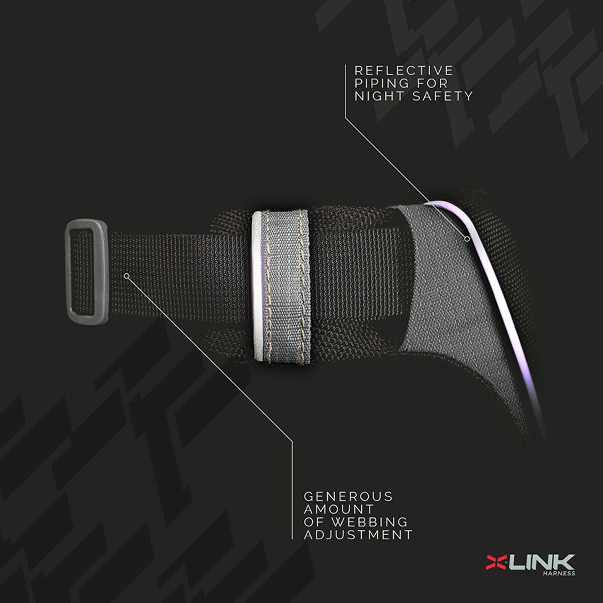 The X-Link™ is a reflective everyday dog harness with leash attachment points situated on both the front and rear of the harness. The front D-ring is best for dog training and teaching your dog to not pull on the leash, whereas the rear D-ring allows the X-Link™ to be used as a standard dog walking harness.