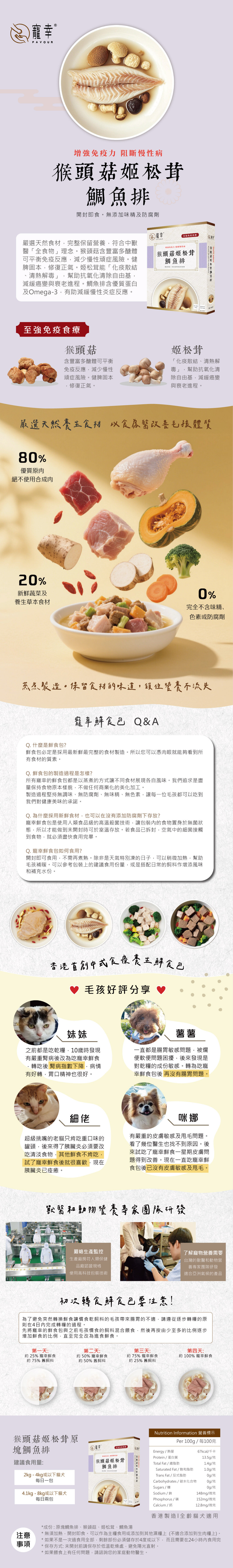 The Petstron Lion’s Mane Mushroom & Brazilian Mushroom with Whole Sea Bream Fillet is crafted with premium natural ingredients to support your pet’s innate healing power. Following the TCVM principle of "treating disease before it arises," this formula strengthens immunity, balances chronic inflammation, and promotes long-term vitality.