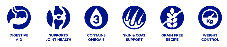 Fish4Dogs foods are grain free and use potato and pea as the carbohydrate providing a food that has a balanced GI and one that is less likely to cause dietary sensitivity.