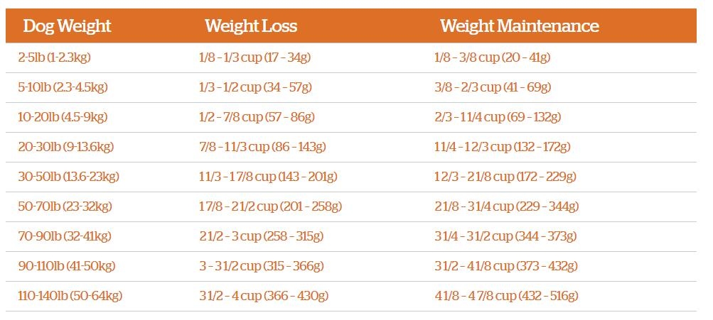 The amount of food your dog needs will vary depending on breed, activity level, age and climate. Use our feeding chart as a guide, adjusting the quantity fed to achieve your dog’s ideal weight. We suggest feeding twice a day. Provide fresh, clean water at all times. Regular exercise will help maintain a healthy body weight. Love, attention and tummy rubs should be given freely, as often as possible.