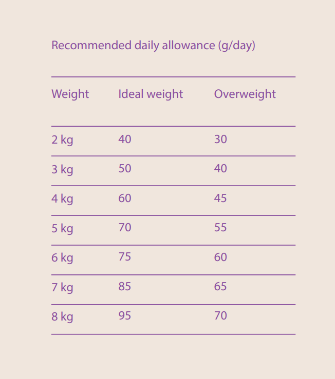 Store in a dry and cool place. See the table below for the recommended daily allowance. These are approximate amounts, which should meet the energy requirements of the cat. May contain traces of other ingredients. Ensure your cat has plenty of fresh water available.