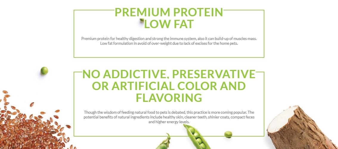 Salmon fish from New Zealand are rich inOmega 3. It can improve of skin irritation and keep shinning coats. The premiumprotein formula can strong and improve the immune system as well.
