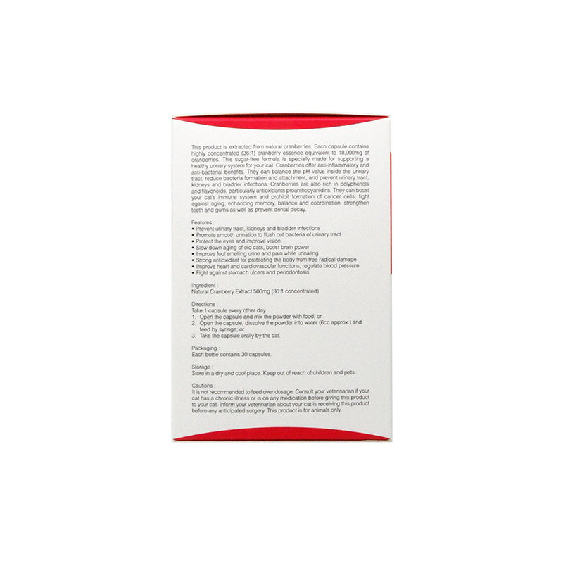 Ingredients:Natural Cranberry Extract 500mg (36:1 concentrated)