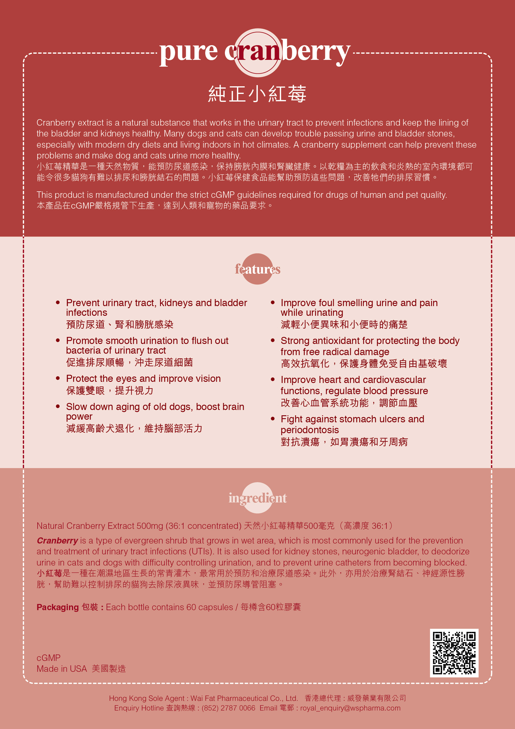 Ingredients:Natural Cranberry Extract 500mg (36:1 concentrated)