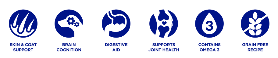 The marine sourced Omega 3 from fish makes it an ideal food for dogs, great for coat skin and joints.