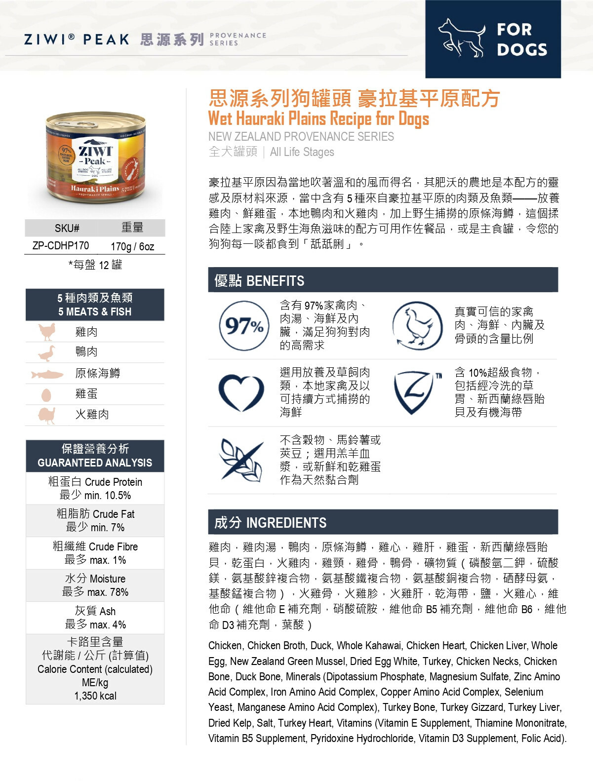 Featuring 5 meats and fish from New Zealand's Hauraki Plains, this recipe combines free-range chicken and fresh whole eggs, local duck and turkey, along with wild-caught, whole kahawai fish. Named for its gentle winds, the fertile farmlands of the Hauraki Plains are the inspiration and the ingredient source for ZIWI® Peak's Hauraki Plains Provenance recipe. This delicious blend of poultry and wild-caught fish can be served as a topper or a complete meal. Your dog is guaranteed to enjoy each and every bite.