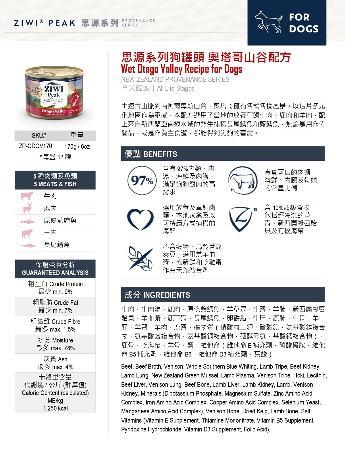 Featuring 5 meats and fish from New Zealand's Otago Valley, this recipe combines free-range and grass-fed beef, venison, and lamb, along with wild-caught hoki and southern blue whiting from New Zealand's sub-Antarctic waters. From ancient mountains to alpine valleys, this diverse region is the inspiration behind ZIWI® Peak's Otago Valley Provenance recipe. Serve as a topper or complete meal. Your dog is sure to enjoy each and every bite.