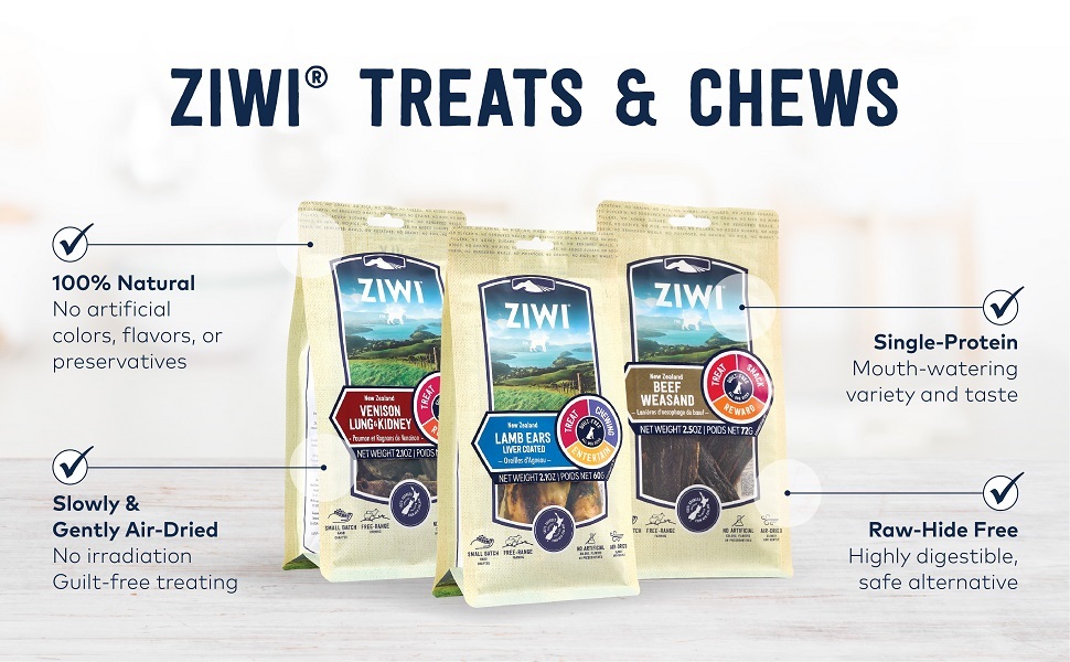 Ziwipeak's oral chews are naturally air-dried to retain its goodness in a shelf-stable form, provide a abrasive action which helps to maintain good dental health to your dog.