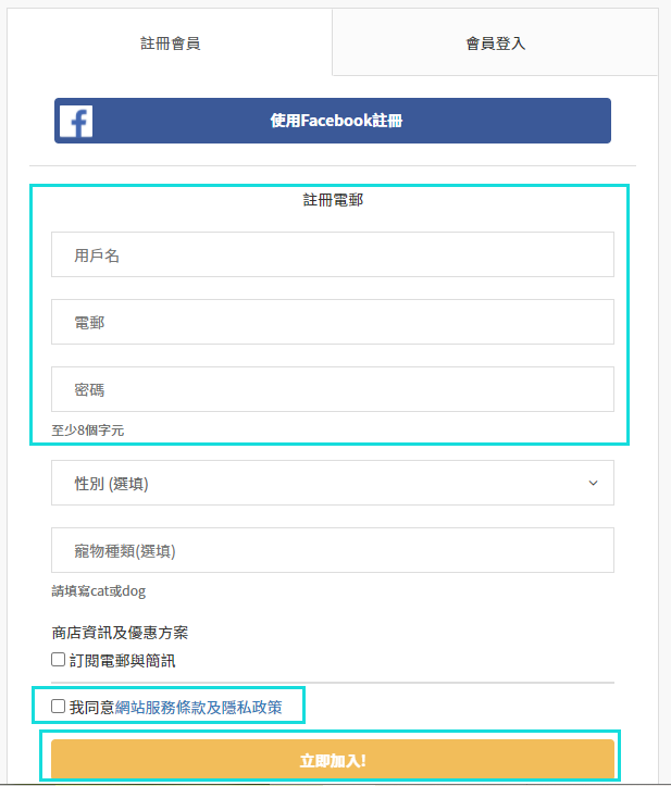 閱讀本網站的隱私政策後點擊「我同意網站服務條款及隱私政策」,再按「立即加入」。