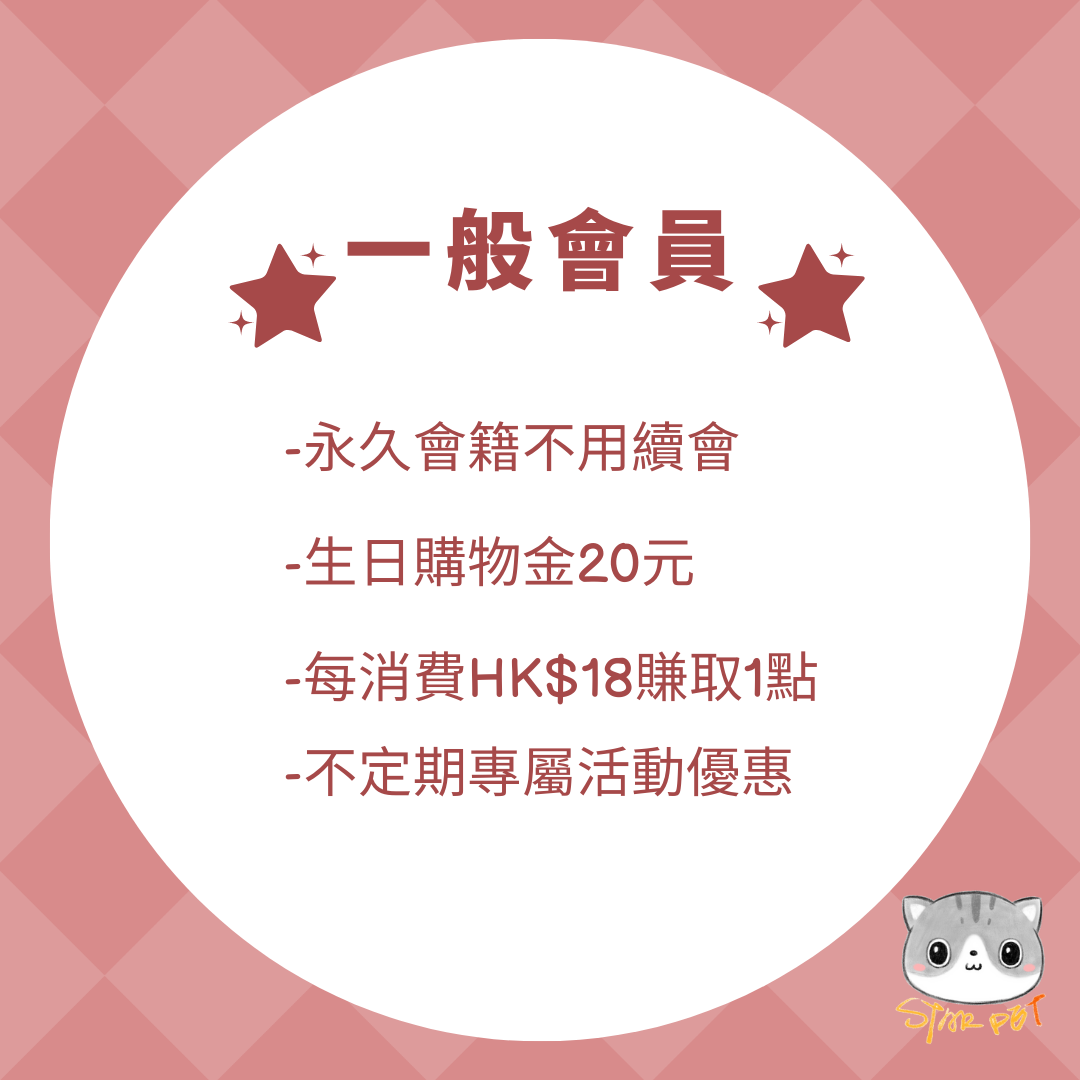 -每消費HK$14賺取1點,會員點數可折抵消費金額或兌現禮物