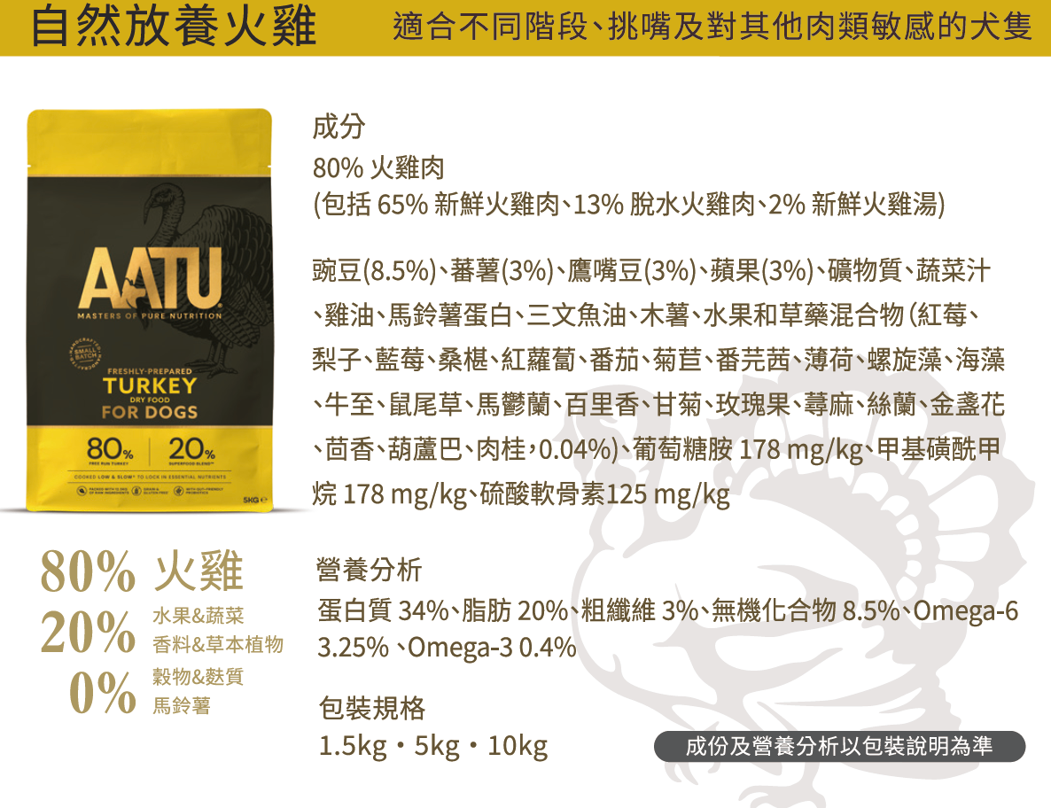 AATU 自然放養火雞 全天然防敏狗糧 1.5kg/5kg/10kg