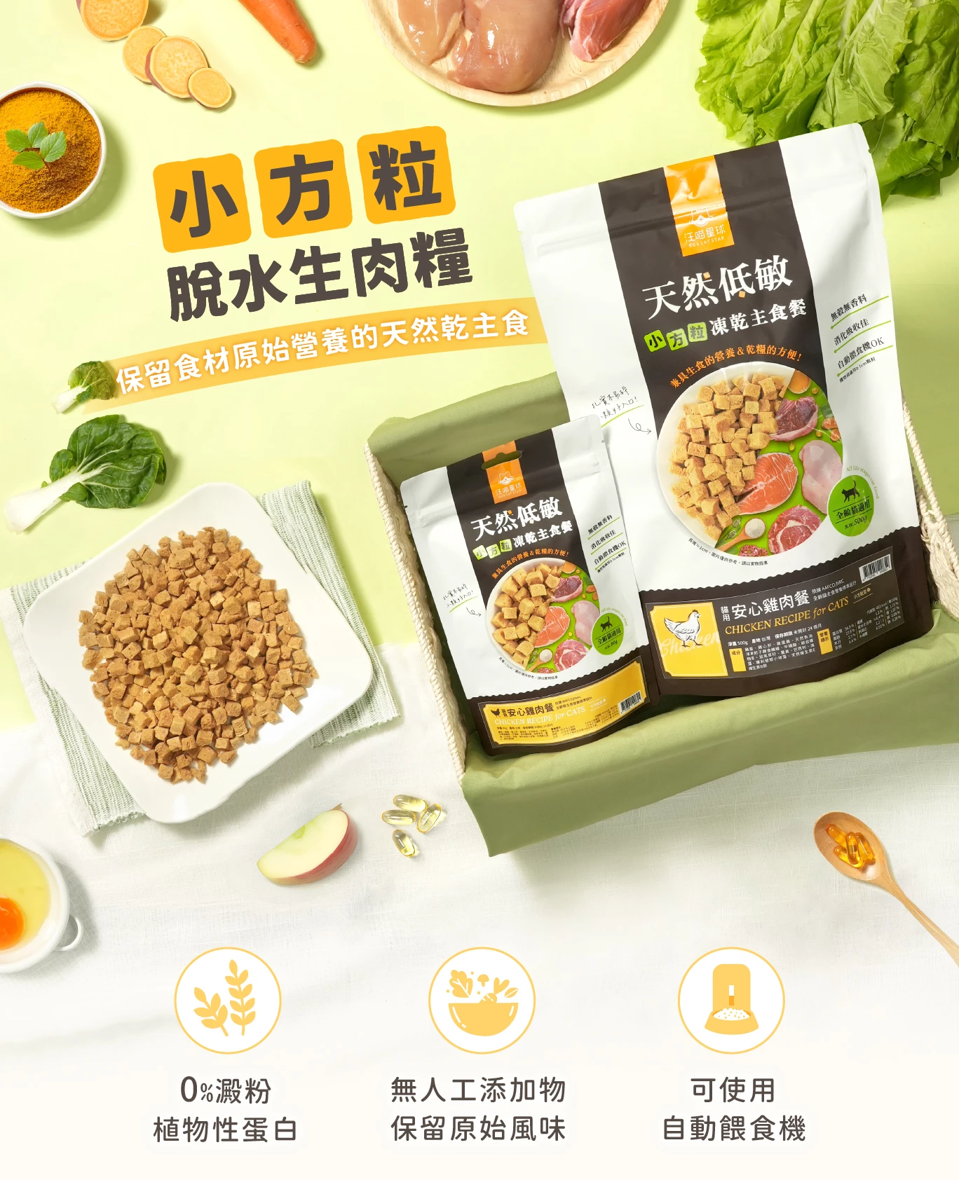 ※ 小方粒的長寬≒1cm,適用接受≥1cm顆粒的自動餵食機