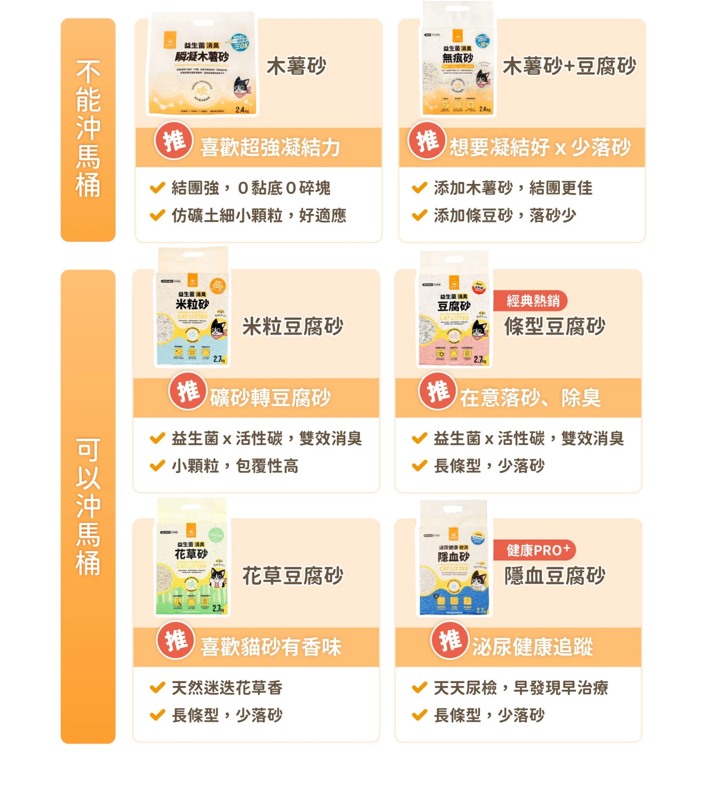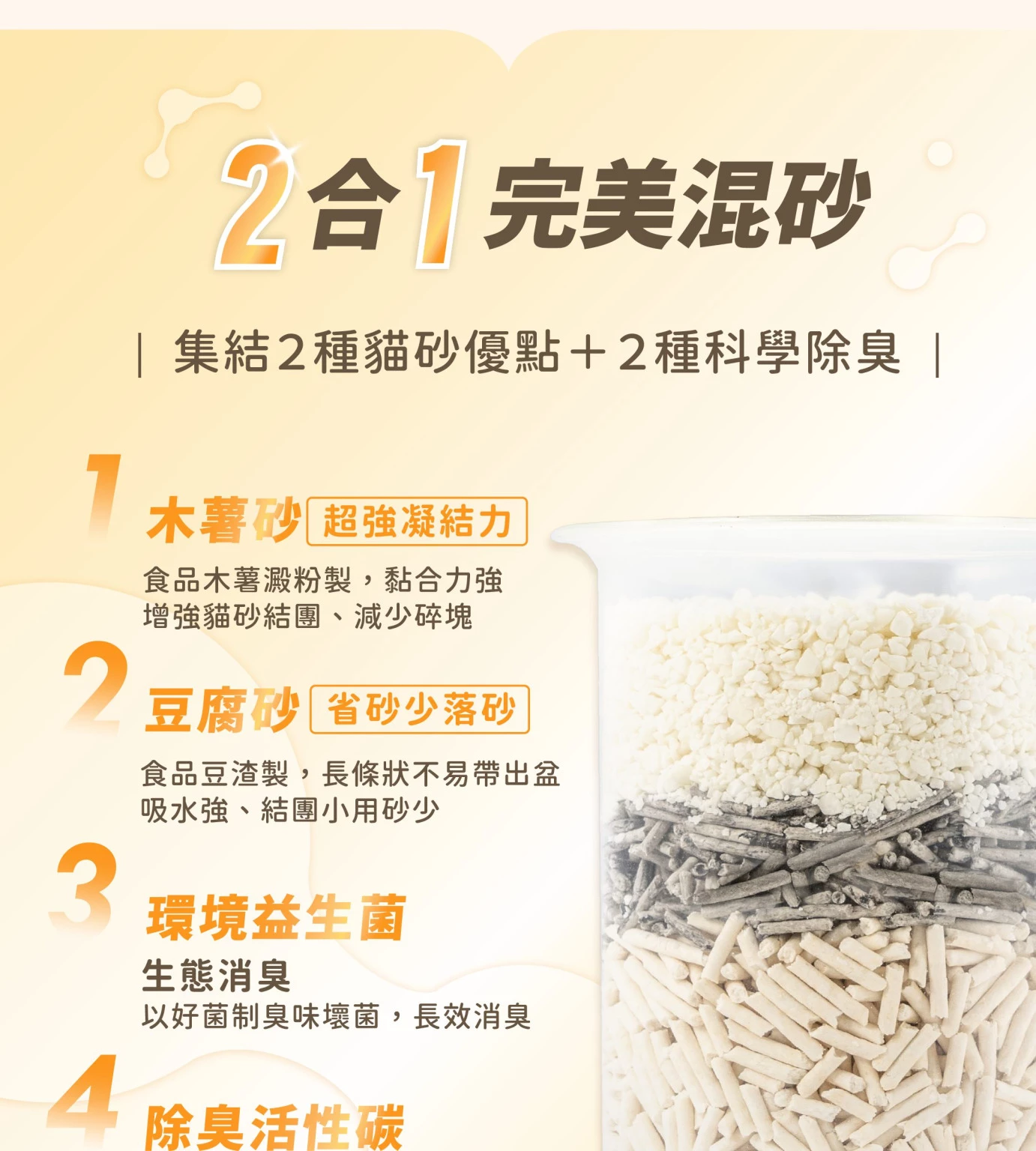 ► 木薯砂+豆腐砂2合1,凝結升級x落砂少