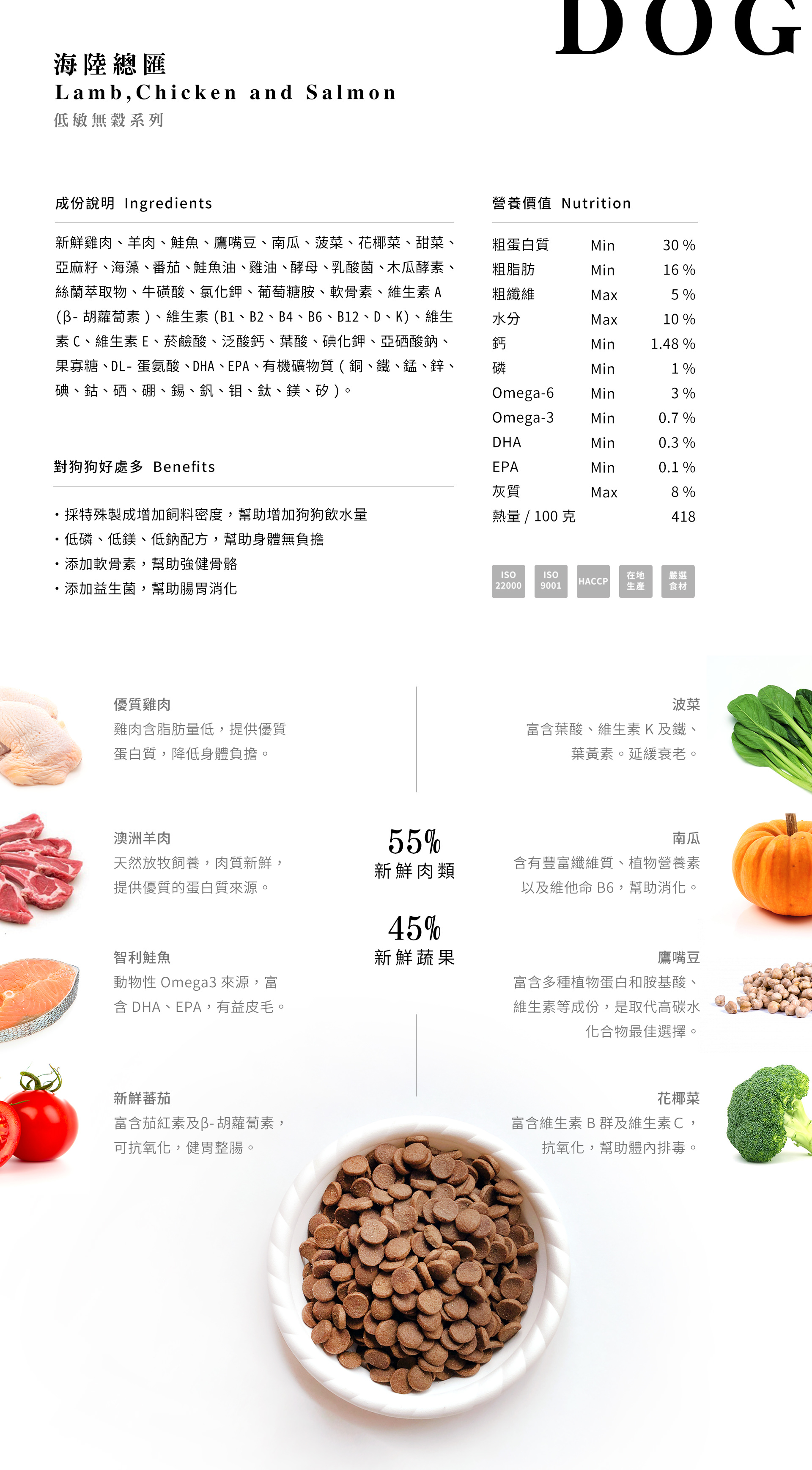 ✓ 採用新鮮雞肉、羊肉、鮭魚等食材與台灣在地新鮮蔬果所製成
