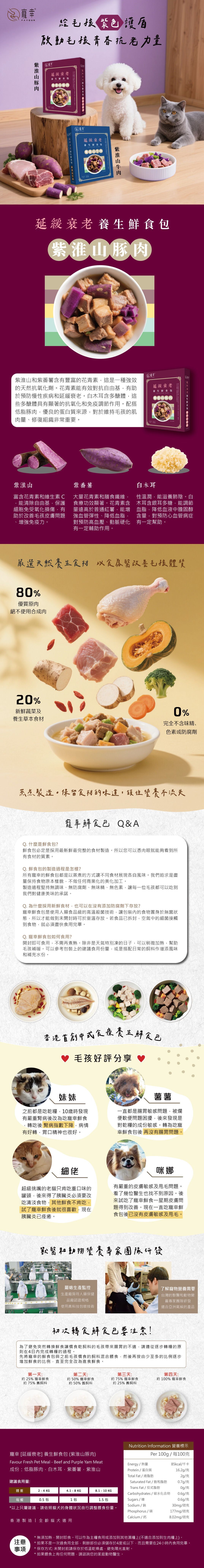 配搭低脂豚肉,優良的蛋白質來源,對於維持毛孩的肌肉量、修復組織非常重要。