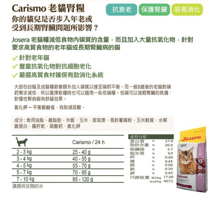 Josera德寵 Carismo 老貓腎糧 (2kg,10kg)