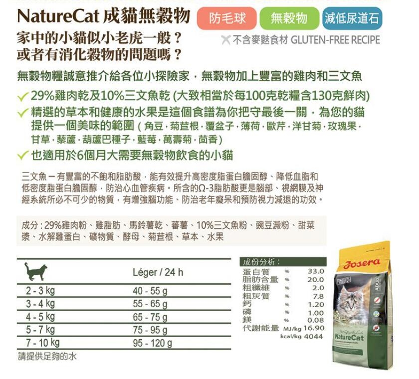 Josera德寵 NatureCat 成貓無穀物 貓糧 (2kg,10kg)