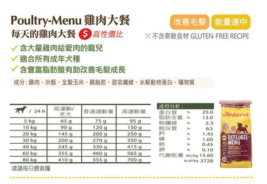 Josera德寵 Poultry-Menu 雞肉成犬糧 (900g x 5,15kg)