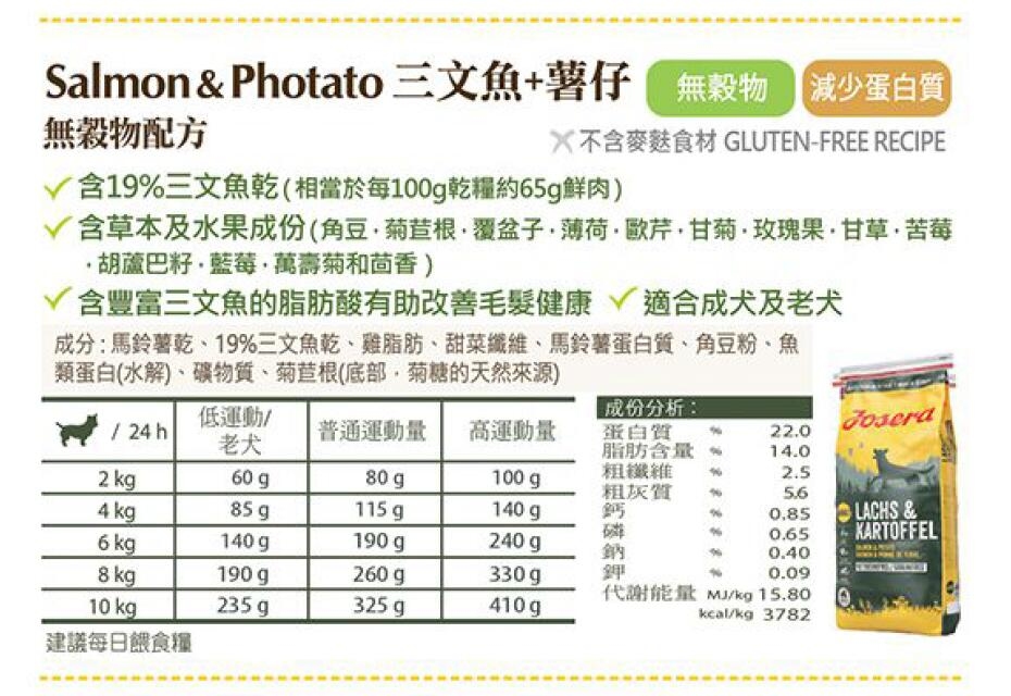 Josera德寵 Salmon & Potato 成犬糧 三文魚+薯仔 (900g x 5,15kg)