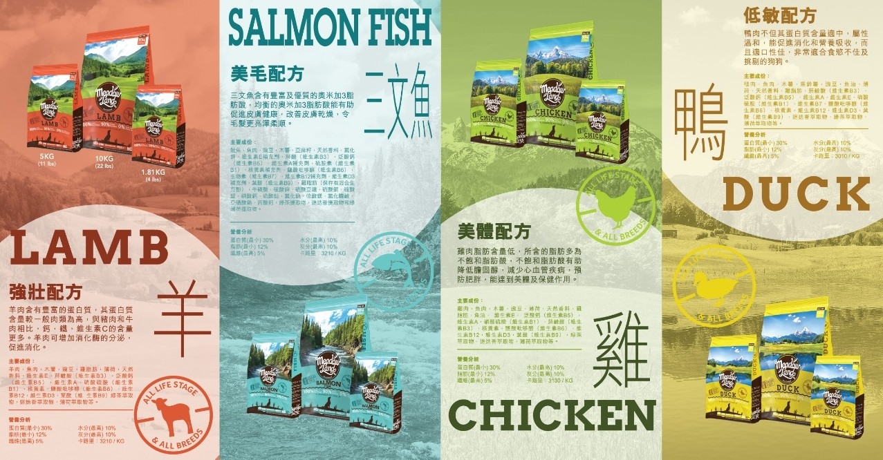 Meadowland的獸醫和臨床營養學家創新研製出最頂級的優質蛋白質,針對寵物腸胃消化問題,以及研製最高質量及全面的均衡全犬配方,含有豐富的營養成分,絕對迎合您寵物每天需要。