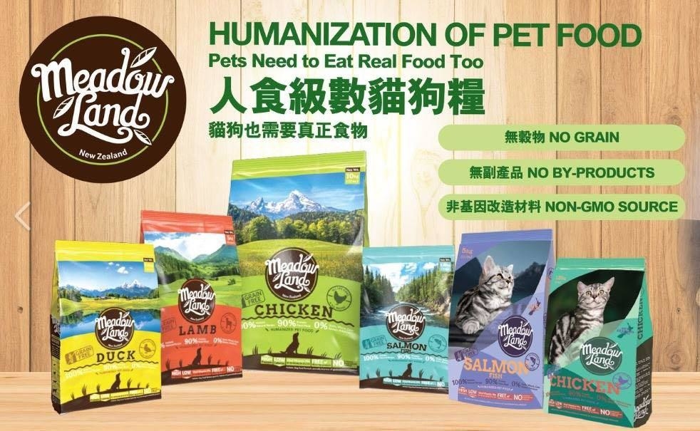 Meadowland貓狗糧生產於天然,無污染的紐西蘭,100%採用當地自由放養動物和非轉基因改造材料來源製造。