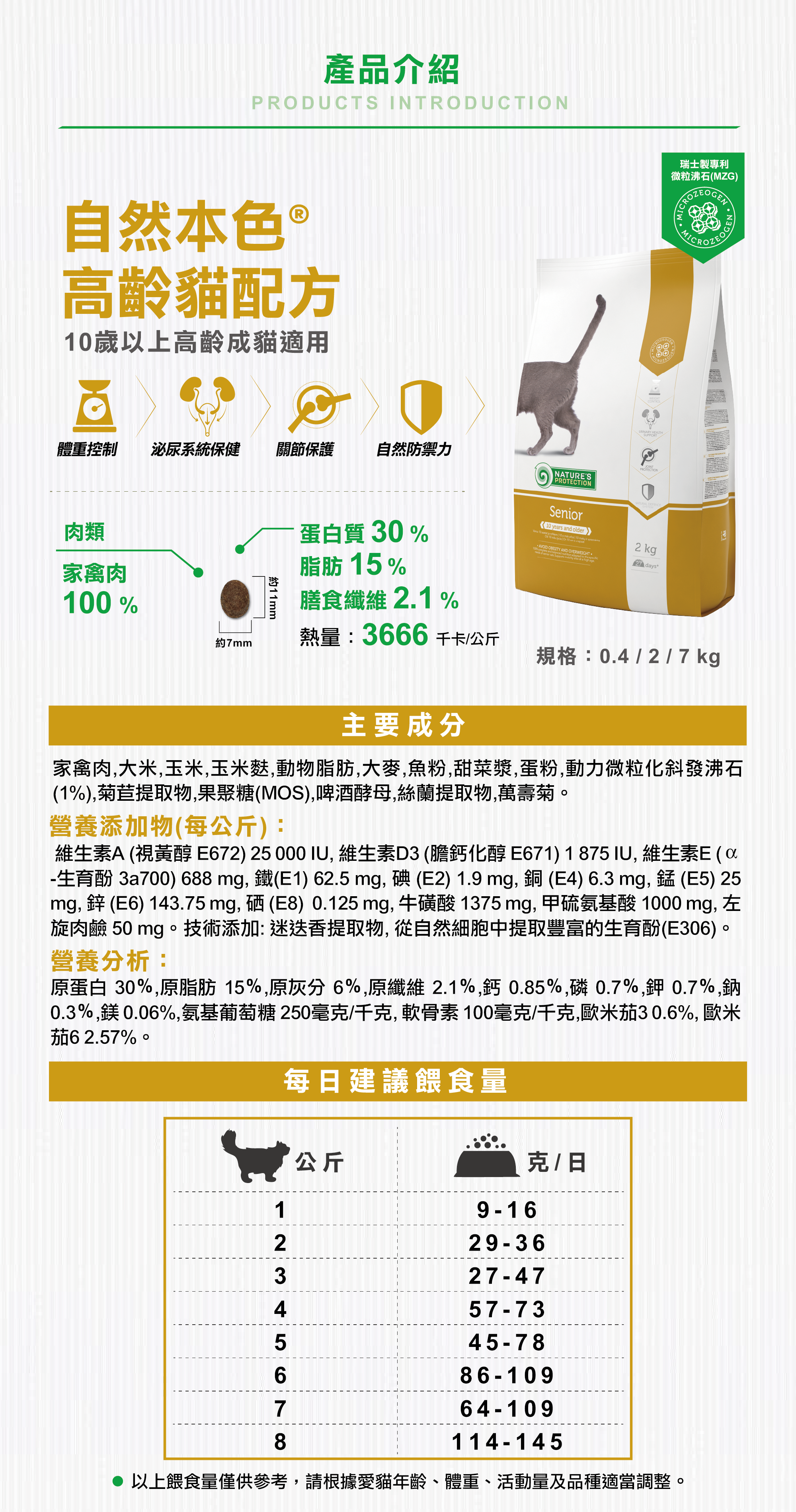 最佳完善的營養成分,提供高齡貓營養所需,維持健康和體重控制。