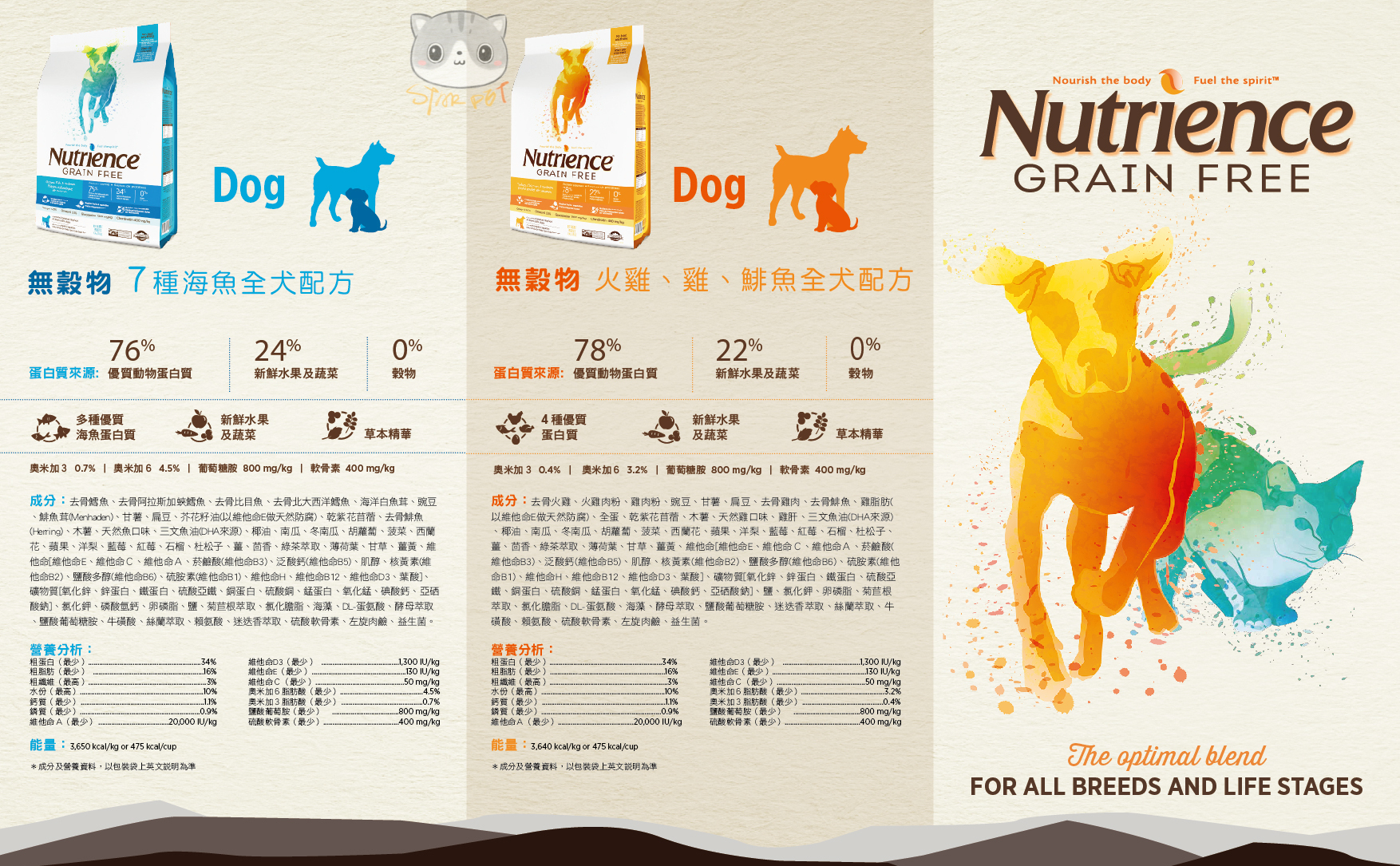 Nutrience 無穀物多種魚配方已達到 AAFCO 狗糧營養指引中適合所有成長階段的營養水平。