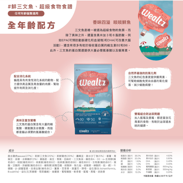 Wealtz 不含任何穀物、馬鈴薯、麩質、玉米等成分!鮮肉隨後的盡是大量超級食物