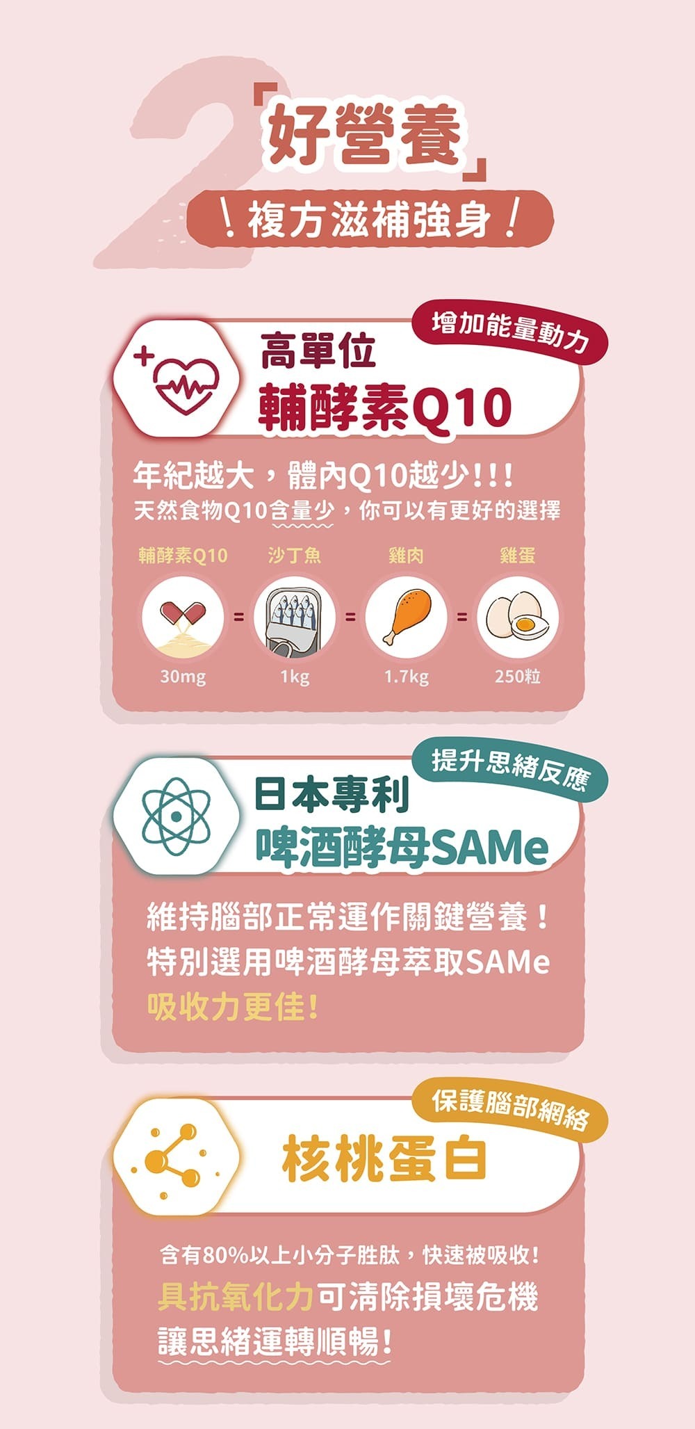 🔸腦部營養補給 -日本專利SAMe、核桃蛋白