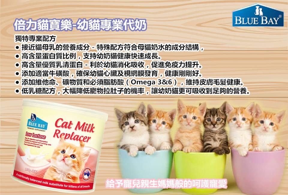 倍力貓寶樂給予寵兒親生媽媽般的呵護寵愛,提供最完整的營養比例, 與母乳最為相近的養分結構易溶解好吸收,營養不腹瀉! 針對各種群的哺乳動物提供專用代母乳及高蛋白素,提高繁衍存活率。符合美國AAFCO寵物營養食品標準。