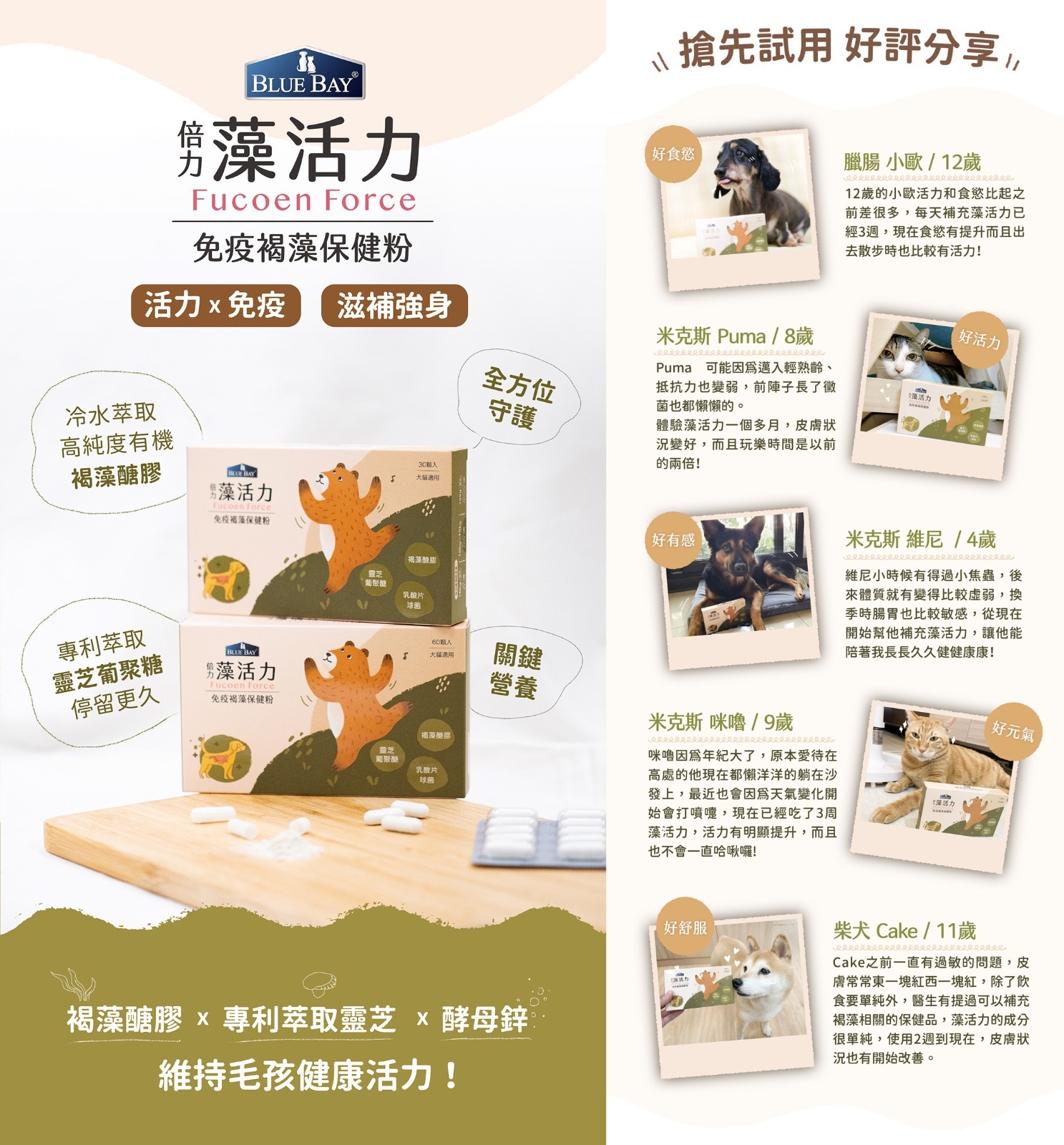 Blue Bay倍力 藻活力免疫褐藻保健粉 30粒 (貓狗適用)