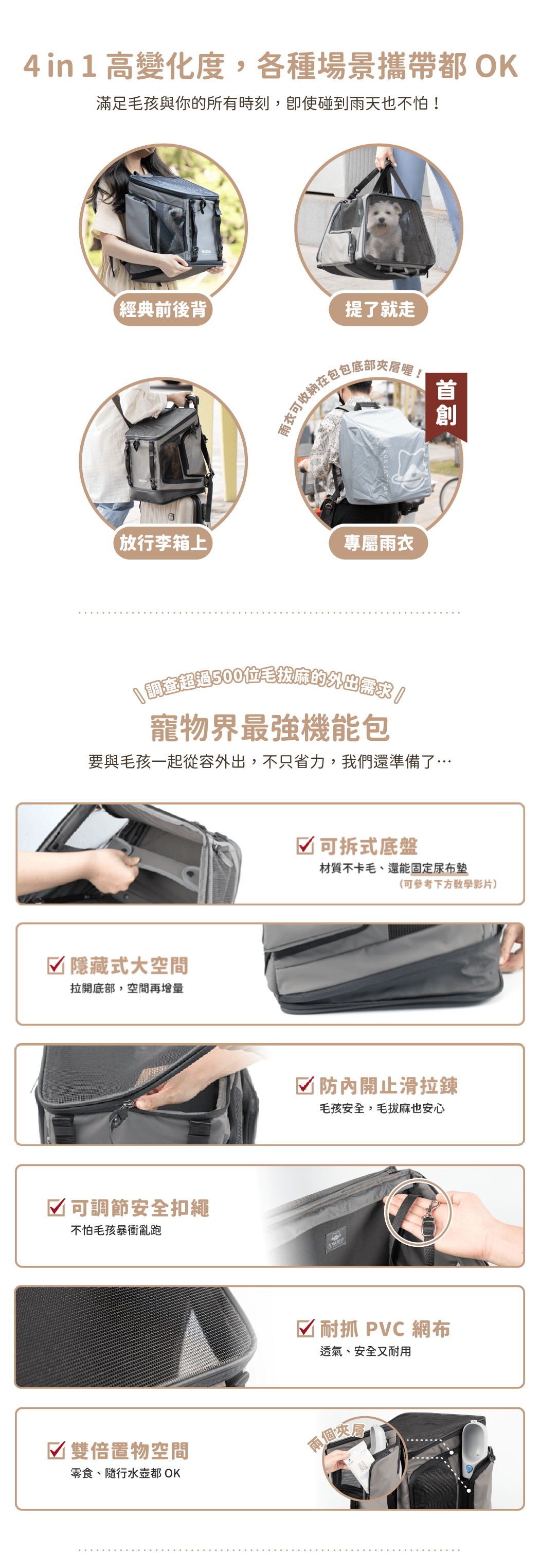 • 背包專屬雨衣,為毛孩檔封遮雨