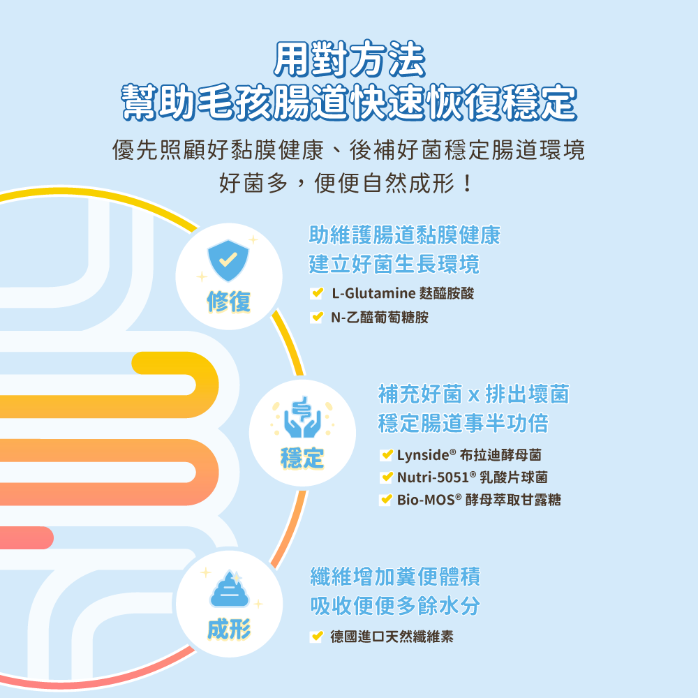 • 幫助黏膜健康,建立好菌環境、維持消化機能