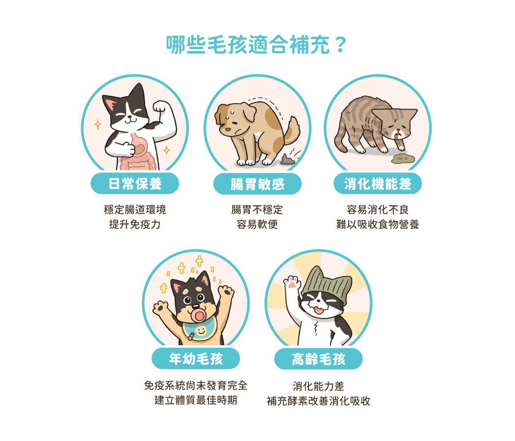 • 犬貓皆適用,幫助腸胃健康、維持抵抗力