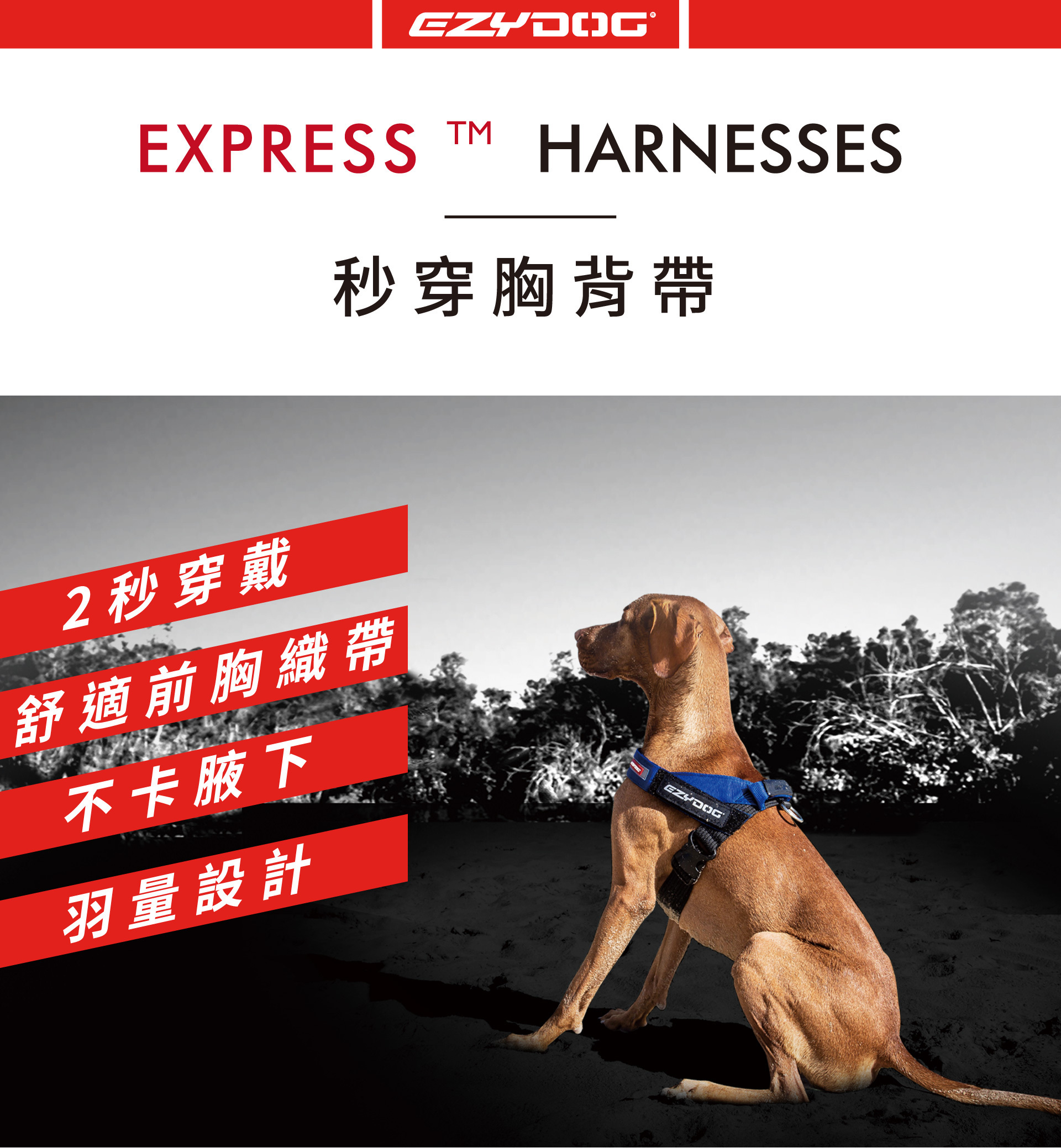 採用單鈕開關設計,像項圈一樣簡單易用,而且 Express™ Harness 可高度自定義,能夠調整適應任何大小的狗隻,不論大小。
