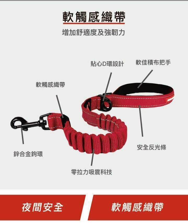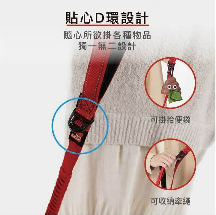 EzyDog Zero Shock技術是位於減震牽引繩中央的先進減震組件,能緩解並減輕主人和狗狗的壓力。