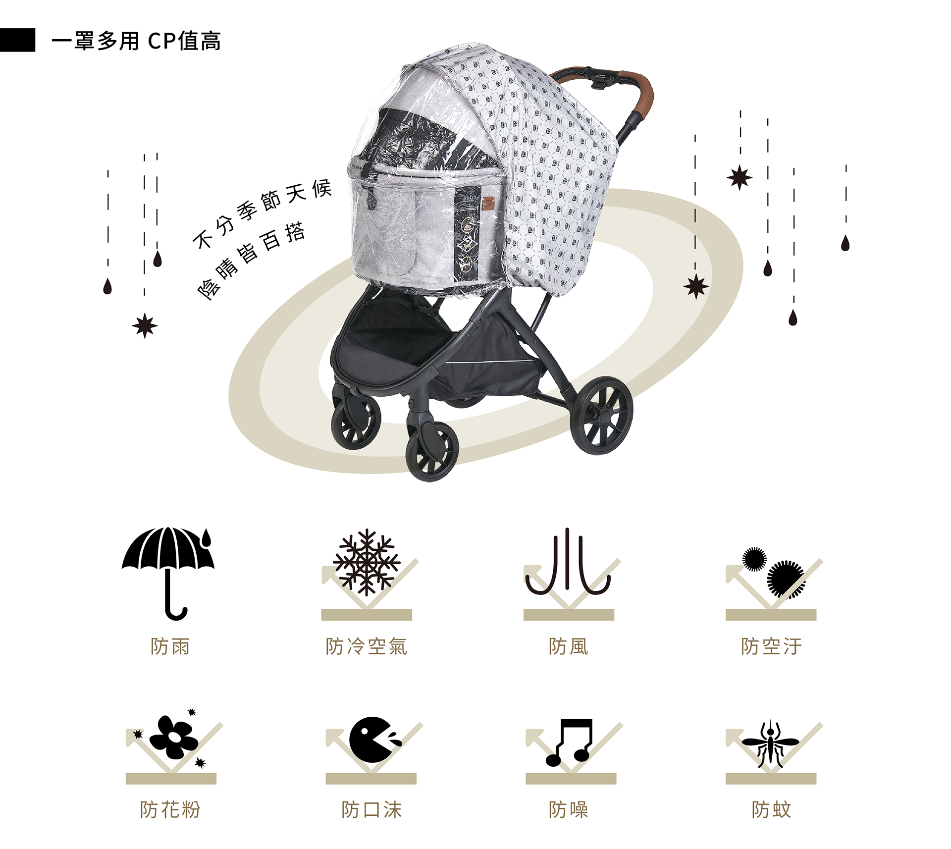 FikaGo Agile 寵物車用 雨罩