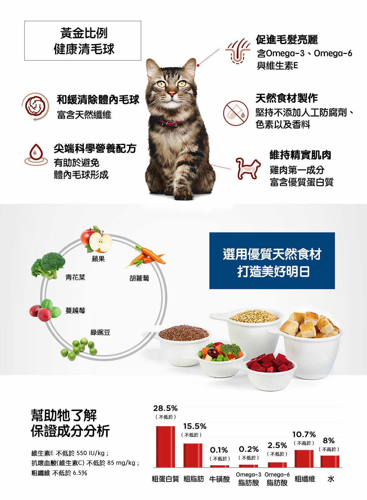 ▸ 富含維他命E、omega-3和omega-6,維持高齡貓皮膚和毛髮的健康
