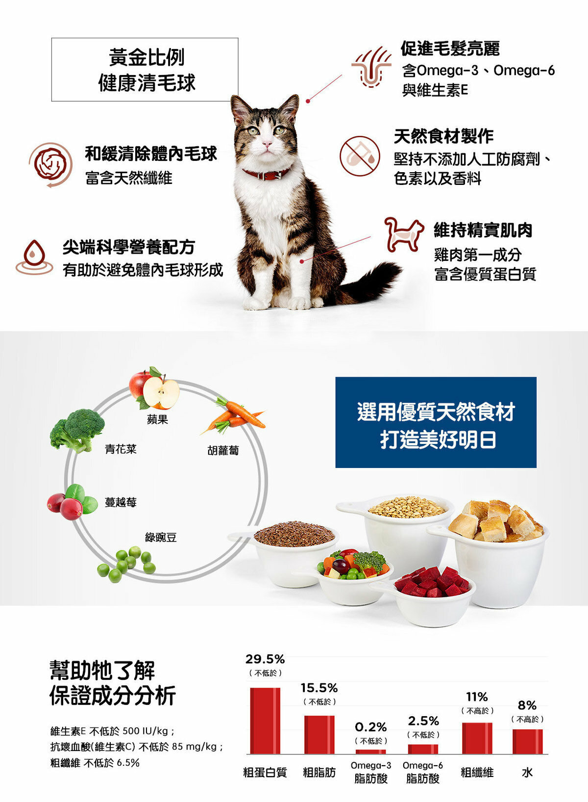 ▸ 富含維他命E、omega-3和omega-6,維持成貓皮膚和毛髮的健康