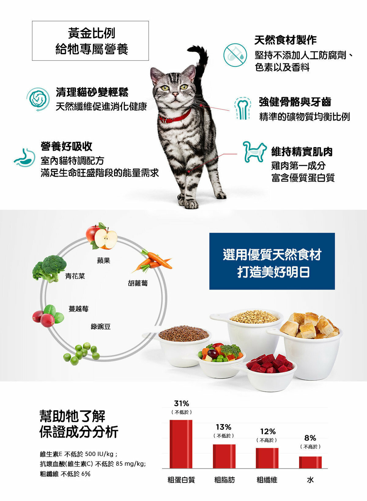 ▸ 室內成貓乾糧特調配方可滿足室內貓的能量需求