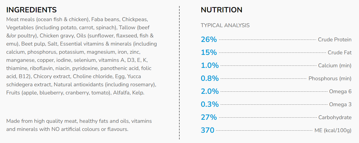 Hypro Premium with Ocean Fish Grain Free provides a nourishing diet that is rich in omega 3 (including DHAs & EPAs), 6 & 9 and is enhanced with real, natural ingredients for optimal wellbeing and health.
