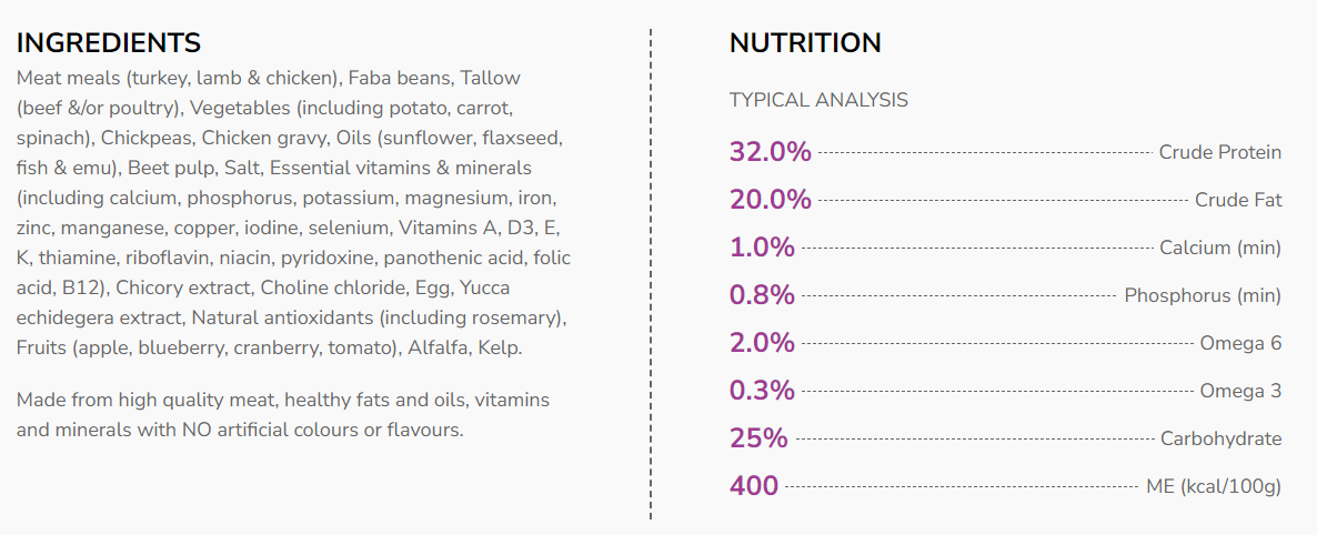 Made from high quality meat, healthy fats and oils, vitamins and minerals with NO artificial colours or flavou