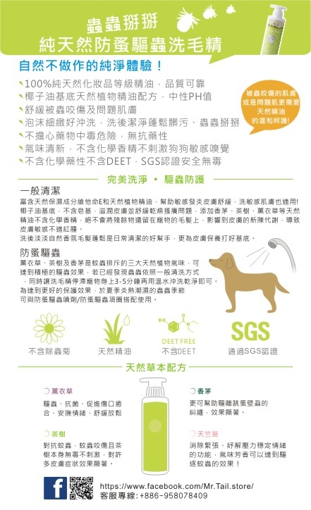 Mr.Tail Dirty Dog 純天然除蚤驅蟲洗毛精 500ml (貓狗適用)