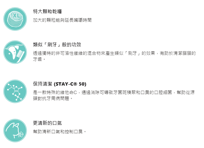 Nutrience Care® 口腔健康配方是一款旨在促進貓貓的牙齒和口腔健康。口腔健康配方採用 Denta Crunch™ 技術配製而成:較大的顆粒,由獨特非可溶性纖維混合物製成,能夠讓貓貓更徹底咀嚼。這樣能有助於清潔貓貓的牙齒,保持良好的口腔衛生,並對抗牙菌斑和牙垢的積聚。除了照顧貓貓的特殊需求外,Nutrience還更進一步確保貓貓的護理可以透過優質、無麩質的乾糧形式提供,並由健康、有益的食材製成。