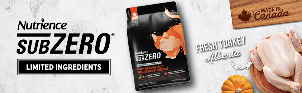 Nutrience SubZero 限量成分火雞與南瓜配方符合AAFCO貓糧營養標準的所有生命階段需求。