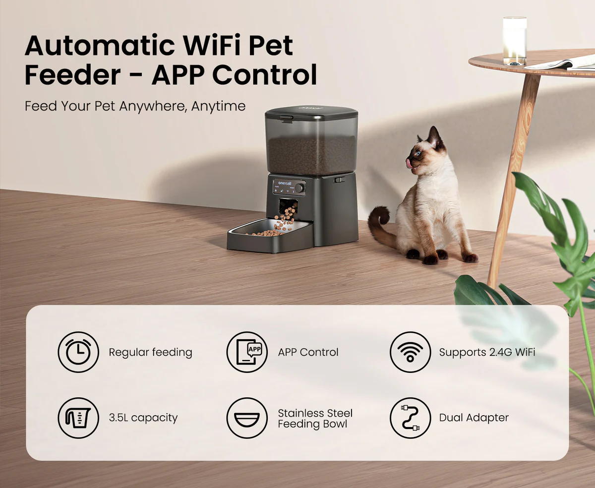 經常忘記餵主子?出門太趕沒時間放糧食?Oneisall推出的自動餵貓器PFD001,容量足夠放進8-12天的膳食,使用手機APP操作,設定時間即可每天準時餵食,不用擔心貓咪捱餓。