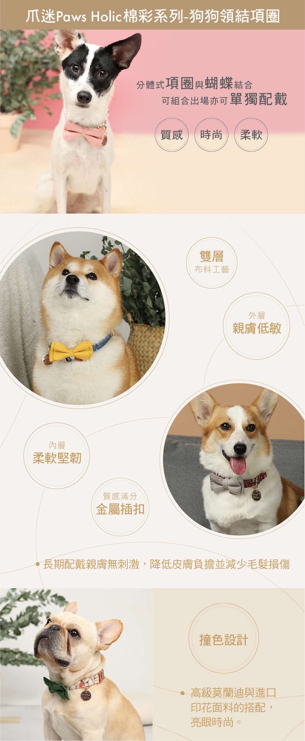 可拆式的蝴蝶結,讓狗狗在裝扮上可任意搭配在多種場合都適戴